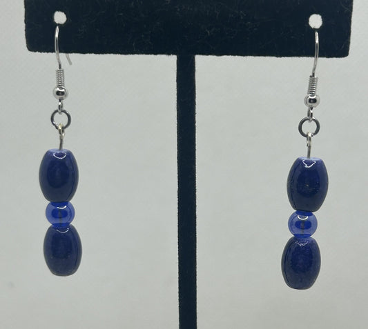 Blue Earrings & Blue/White Silver Plated Bracelet & Necklace