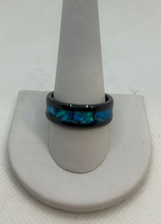Lapis Lazuli (Mottled Blue) Black Carbon Fiber Ring